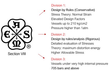 This section is divided into three main parts, with Division 1 and Division 2 being the most widely used in the industry. Although both pursue the same goal—equipment safety—they do so through different design philosophies, which affect the methodology, safety factors, and final component thickness. In this article, we review the key criteria for choosing between one or the other.