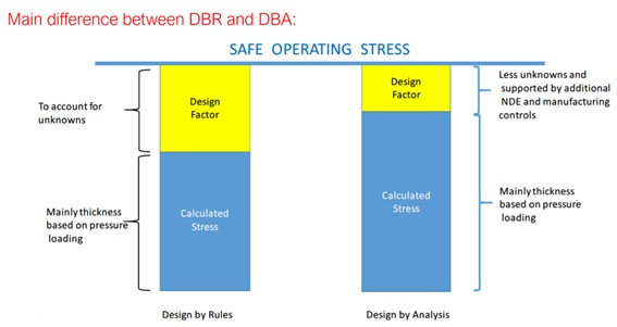 - Division 2 also incorporates DBR (in Part 4), but it allows and promotes Design by Analysis (DBA), which validates structural integrity through more advanced analytical methods, verifying specific failure modes. This approach provides greater structural fidelity and more efficient use of materials.